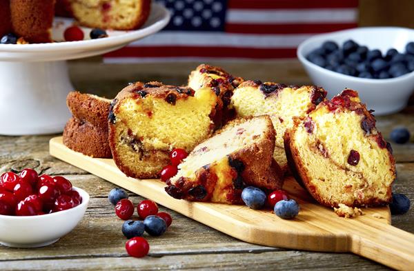Fresh New England blueberries and Cape Cod cranberries are placed in the center and on top of this coffee cake.